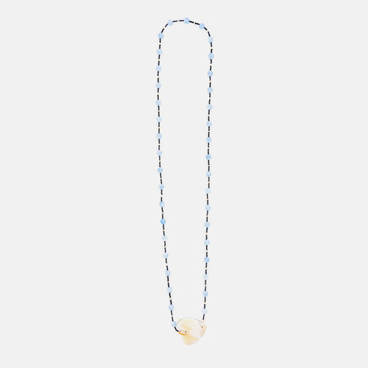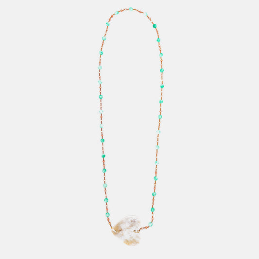 Collar de cuerno, hematitas, jade y oro de 18 kt